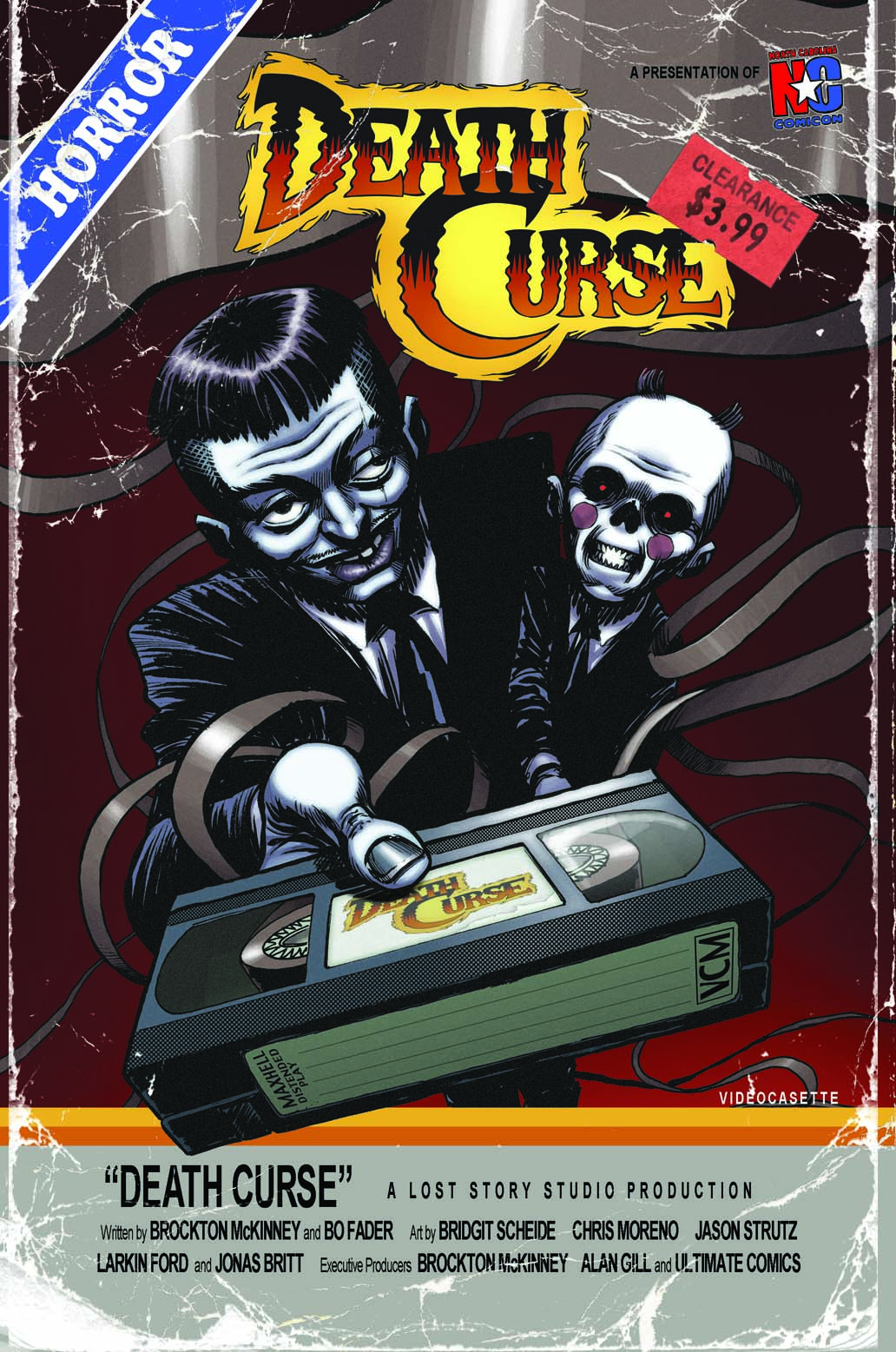 Horror hosts Mr Latch and the Curse offer a quintet of unsettling tales in the first issue of this adults-only new book from writers Brockton McKinney & Bo Fader and their artistic chums. Our fictional storytellers are a creepy guy with a pudding bowl haircut and a puppet baby who looks as if he’d eat you as soon as look at you. They share their wares via video nasties, an oddly dated concept, but I suppose you gotta have a gimmick. The framing sequences are visualised by Chris Moreno – who also provides the eye-catching cover – and very well-staged.