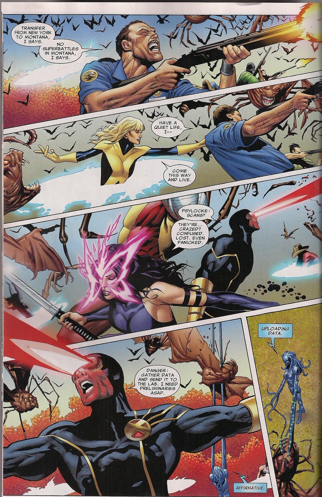 But that’s not important right now. What is, is the fact that the plot maguffin allows writer Kieron Gillen to split Cyclops’ Extinction Team into pairs, elicitng some elegant character moments. There’s Magik bringing brother Colossus-cum-Juggernaut out of his funk; Hope dropping the tough girl bit long enough to enjoy a flirt with Sub-Mariner; Storm and Cyclops discussing the mutant schism; and Magneto forcing Psylocke to admit she knows more about Tabula Rasa than she’s telling anyone. Only the robotic Danger is left out, with Cyclops, as is usually the case, restricting her to communications – and don’t think the formerly murderous AI hasn’t noticed.