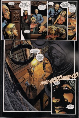 And I love it. Tom Mandrake conjures up a world in which the bogeyman isn’t under the bed, he’s sitting on it and climbing towards you. Pages drip with darkness and gothic detail, angles unsettle and eerie artworks frame the frames. And what Mandrake doesn’t show with his pencils and inks, Wolfman tells with his well-honed words. The Night Force concept, which he created with Tomb of Dracula partner Gene Colan, allows Wolfman to play to the horror strengths he developed on that Marvel book back in the Seventies. His words describe a world of horror, in which ordinary men and women stand little chance of surviving the dark powers that surround them. The only hope is to confront your fears head on and trust someone, somwhere is watching out for you. And even if you live, there’s no guarantee you’ll retain your body parts. Or sanity.