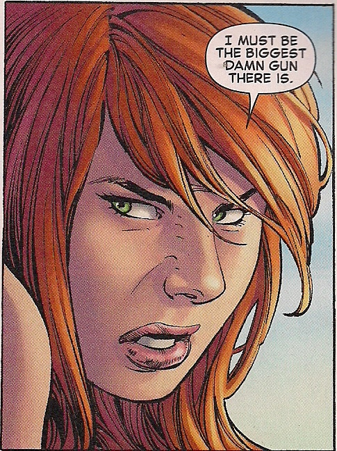 Hawkeye and Daredevil Mini-Mates, Black Widow the voodoo doll, a brigade of Giant Men, lollipop-headed mutants … Romita and inker Scott Hanna can do so much better than this. As I said, they demonstrate as much in this very issue. Take a look at that panel I mentioned of Storm, and a random shot of Hope, nicely coloured by Laura Martin.