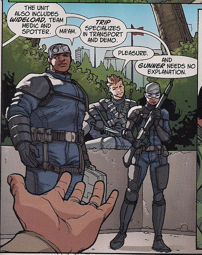 While there are disagreements, writer Tom DeFalco steers clear of heavy-handed fallings out. Even the biggest moment of intra-team tension has a point to it. Recent signing DeFalco is getting better at capturing the members’ voices, while bringing the skill for plotting he honed at Marvel. The new antagonists here don’t grab me immediately – just how many secret factions connected to Steve Trevor does the US Army have? – but we’ve not seen the box-ticking Trip (White Guy), Wideload (Big Black Guy) and Gunner (Girl, Probably Gay) in action yet. I suspect I’m just an old fanboy who can’t get excited unless superhumans wear colourful costumes.
