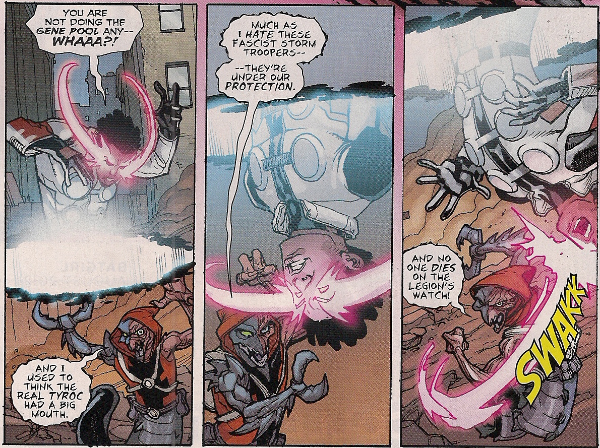 While I’m still hoping this book gets cancelled and replaced by a second 31st-century set Legion book, or a bi-weekly version of Legion of Super-Heroes, I have to say that this is the most entertaining issue in ages. I could actually feel that good old Legion spirit. And that’s something I’ll pay good money for.