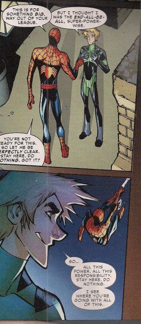 I’m not sure I’ll pop back to see how Andy gets on, though Slott is a talented enough writer to not go for the obvious and have him quickly learn what it is to be a hero, or get killed. The simple fact is that Alpha doesn’t grab me – every time he comes on panel, I’m wishing him away. What I want from a Spider-Man book are challenging villains, plenty of Peter Parker, and supporting characters charismatic enough to have their own subplots. I don’t want an arrogant kid as a major player.