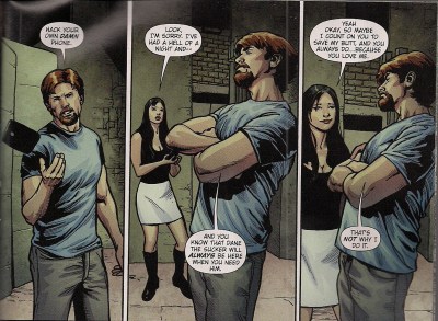 4. A mate used to joke that you could tell if an issue of Palmiotti and Grey's Jonah Hex was going to feature rape by whether or not it had a woman in it: “Tallulah Black is in this one, you say? Think I'll give that a miss…” and sure enough a nameless blonde finds herself battered off a car bonnet while the villain tells the utterly passive and useless heroine to make herself ready for him because she's sleeping her way close to the men who killed her family while she watched because this is thoroughly modern Grrrl Power in effect or something.