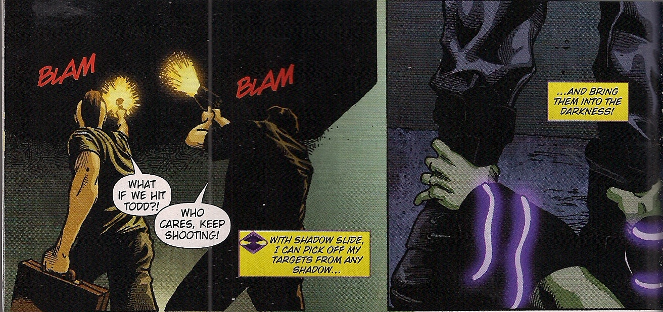 The artwork by penciller Cat Staggs and inker Tom Derenick serves the story more than decently. Jennifer and Dane are well designed, and while the Bender brothers are pretty boy bland, there’s no real reason they shouldn’t be. The attractiveness of evil is a cliche, but it makes having sex with crooks a little more palatable. The panel-to-panel storytelling is fine, and editor Harvey Richards unleashes a secret weapon in colourist Jason Wright. Last seen – by me, anyway – as regular colour artist on the much-missed Secret Six series, Wright manages to tone scenes realistically without them seeming as dull as real life can get.