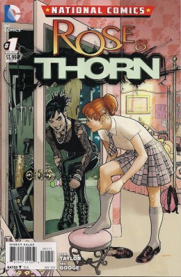 Being an old fart fan, I liked that writer Tom Taylor borrowed the Rose Canton name from the Golden Age Flash villain, but having read this issue I reckon he should give it back. I don’t think the original Rose, as a Forties gal, would wish to be associated with this comic. Today’s Rose and Thorn is very much a modern girl, passing messages to herself via ‘Facelook’, making a pass at her girlfriend and getting a tattoo. There are a few funny lines. There’s a good moment in which something of Thorn seeps into Rose’s science lesson. But overall, this just leaves a nasty taste in my mouth – imagine Jennifer Blood Goes To Sweet Valley High.