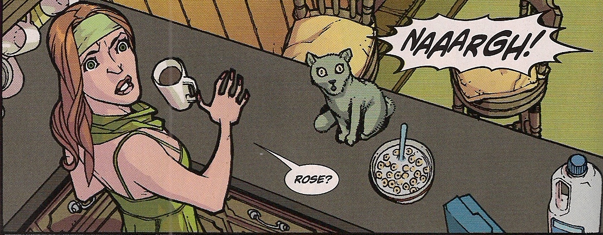 You want Gilmore Girls meets Teen Wolf? Then this is the comic for you. The apparent stupidity of Rose in a) not turning to her cool Auntie Cate when she finds herself covered in blood and b) not going to the police the minute she fears for Troy, can be excused by her fragile mental state. But given said emotional brittleness, what the heck is this girl doing going to regular school? Either some psychotherapist is lousy, or they’ve deliberately put her where she can make trouble for who knows what reason.
