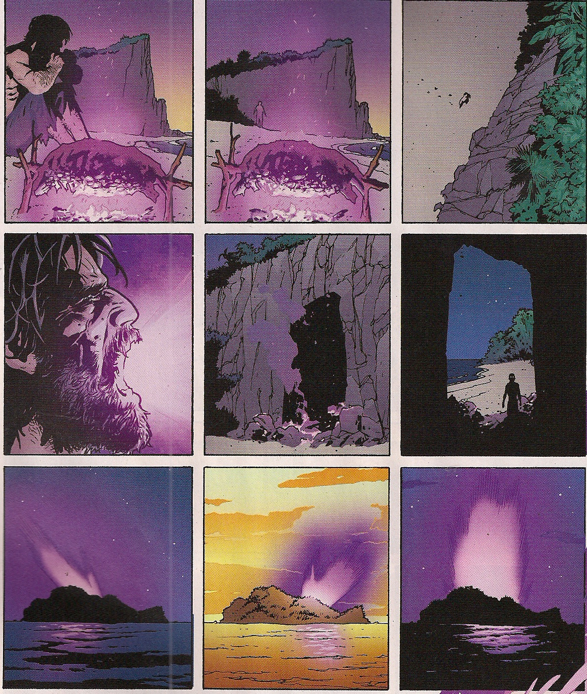 Hello G, thanks for that. You got more detail out of the two flashback splashes than I did, but as I said, I think I got the broad strokes. It's still the sequence I posted that has me wondering – presumably he's just sitting in the cave, the power is manifesting beyond his control and loosening the face, but, well, as I said, my preference is for comics that actually have the two elements that make comics, comics. I'm no keener to have all words than I am all pictures.