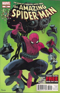 Writer Dan Slott is on excellent form here, giving the reader back the hope that seemed lost at the end of last issue. Peter may have lost his body, but he’s alive and fighting back. Slott even finds room for humour, though it’s black as night, tapping into that time Aunt May was engaged to Dr Octopus. Poor Peter.