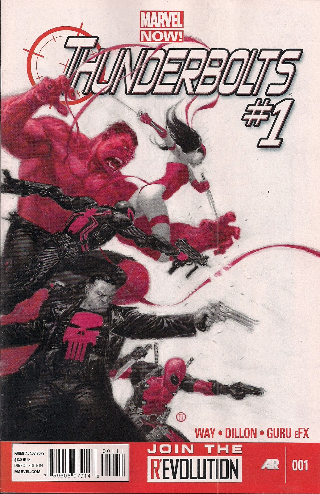 Way describes this new iteration of the Thunderbolts as anti-heroes, rather than villains. Me, I don’t think it’s semantics to call killers for hire such as Elektra and Deadpool villains. And while the Punisher punishes only crooks, he’s still wandering around murdering at will. Venom, I believe, is these days a government operative, while Diamondback, I thought, had reformed and was an ally of Captain America. Ross, as Red Hulk, has recently been a member of the Avengers, which surely puts him in the hero category.