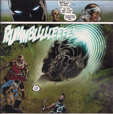 It’s a lovely day in Wakanda. Three of its brightest young people have won themelves places on the nation’s space programme, to go out into the universe and see who’s out there. Unfortunately, the extraterrestrials come calling first, with tragic results. And the queen bee of the aliens, ‘a Black Swan’, is someone T’challa feels he can’t take on alone. Why he doesn’t simply call in the ‘daytime’ version of the Avengers, a team he’s served with several times, is something we’re not told yet.