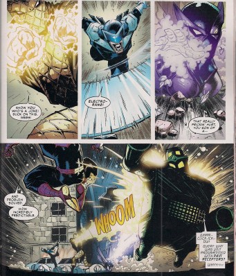 That apart, there’s loads to enjoy here – the latest Sinister Six irritates original founder Ock by being not just all-new but, in his opinion, all-lame; there’s Speed Demon, Boomerang, the Living Brain, a female Beetle, Shocker and the utterly ridiculous Overdrive, a guy in a giant tyre. The self-proclaimed Superior Spider-Man is making short work of them until a barrage of super-fast blows from Speed Demon sees Ock decide that the fight’s not worth the hassle.