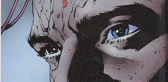 It’s been a while since we’ve seen the widescreen stylings of Bryan Hitch in a Marvel title, and it’s good to have him back. This is a big story demanding big images, which is precisely what we get over the first few pages. And while normally I’d have a wee whine about using up so much room, Marvel give us 29 story pages, plus metallic effect embossed cardboard cover, for $3.99. It’s refreshing, and will hopefully entice more people to try this opener. It’s certainly worth looking at for Hitch’s pencils, inked by the sorely underrated Paul Neary and coloured by the rightly lauded Paul Mounts. The three men combine talents to present a dark, desperate world, eerily illuminated by blue bolts of lightning and the ray blasts of Ultron’s elite. The panels are so packed with detail it’s almost wrong, but it makes for a rich visual experience. There’s some especially fine “eye-work”, showing us what the characters are feeling without need for thought bubbles.