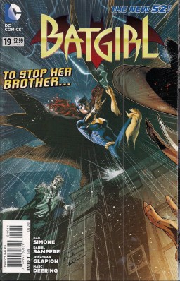 This is an excellent comic. Simone wraps up the James Jr storyline in ways that are true to all the characters without ever being predictable. The fascinating relationships between the four members of the Gordon family become richer, promising a slew of interesting storylines. The instalment is narrated, as always when Simone is writing, by Barbara, enhancing what we can see on the page while taking us deeper into Batgirl’s character. There’s a very interesting moment when Barbara justifies to herself not going all the way with her Alysia sharing session, keeping her identity as Batgirl a secret: ‘If she doesn’t know that part, I can still protect her. I can.’ Keep telling yourself that, girl – and remember the moment next time you chastise Batman for keeping information about the Joker from you …