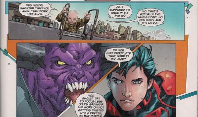 It looks as if the H.I.V.E. business will run through the next few issues; after that, I want to see Jordan really concentrate on Superboy’s non-super life. He began settling in on Earth months ago, but his new supporting cast have all-but vanished amid the never-ending, not-that-interesting, nonsense surrounding Superboy’s origins.
