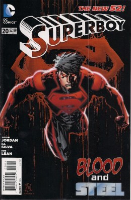 The cover is the work of illustrator Ken Lashley and colourist Matt Yackey. It’s great stuff, if you like your Superboy growling an gritty; it’s got bugger all to do with the story, mind. ‘Blood and Steel’? It does have something to do with this solicitation, which came out awhile back and still sits on DC’s website, even as I type: