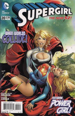 1. Those are some spherical breasts going on in that cover image, Martin – is it explained in the story why Power Girl has snapped Supergirl's spine and then twisted her torso around so it is in the same shot as her buttocks?