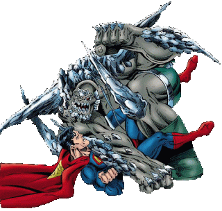 Superman fights the Hybrid creature created by a Lex Luthor virus, bidding to dismantle it into its constituent parts – ordinary citizens of Metropolis – and he’s doing well until the bigger threat of Doomsday comes along.