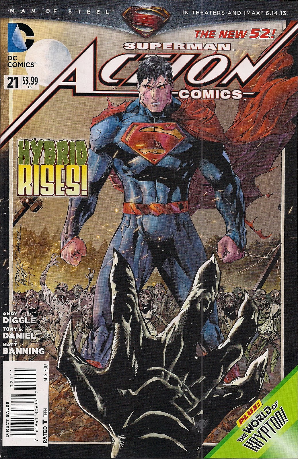 I like Daniel’s art a lot – keeping the story to a minimum (I suspect that not knowing Diggle’s full plans, he didn’t want to second-guess and get things wrong – ‘do no harm’, and all that) allows room for the big, splashy moments at which he excels. A two page-spread heralding the arrival of Not Doomsday is like a gut punch with eye candy, but my favourite moment sees Superman swoop down and thoroughly biff Luthor. It’s very nice work from Daniel, with inkers Batt and Norm Rapmund.