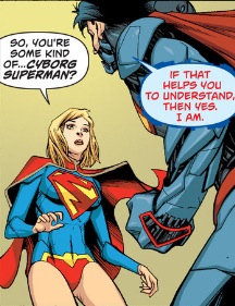 Martin, I'm just getting around to reading this, and it's the first issue of Supergirl I've bought in a while (I've been reading them though at the bookstore I by some comics at, yes, I know, shameful practice). You're spot on (as usual). This one was wonderfully not decompressed, full of nice emotions, and had a nice angle with the Cyborg Superman. I'm guessing he's the same Cyborg Superman from the Death of Superman, though I find that confusing in the 'NU52' timeline. If that story happened, then Lois and Clark were married then, but clearly in the NU 52 they seem to have never been together, these 'soft reboots' are for the birds.