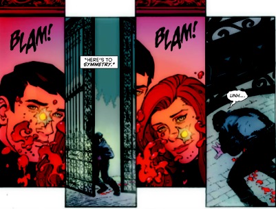 I love the simple facts of Batman’s 1939 origin. Orphaned by violence, he sits in a dark study, wondering how best to fight crime, and a bat appears before him, inspiring his costume and modus operandi. But legends bear reinterpretation and extrapolation, and that original story has been retold and embellished many times over the years (Thomas Wayne wore a Bat-Man costume for a party when Bruce was a boy; Bruce fell down a hole and was terrified by bats; Martha Wayne was killed by a heart attack, not a bullet; Joe Chill was the son of the Wayne’s housekeeper; the bat didn’t fly through an open window, it crashed the glass …). To me, the hologram is unnecessary, a little too SF for Batman, overcomplicating the elegant original. But I can embrace whichever version, or versions, of the origin I want, and as part of this retelling, the hologram works just fine.