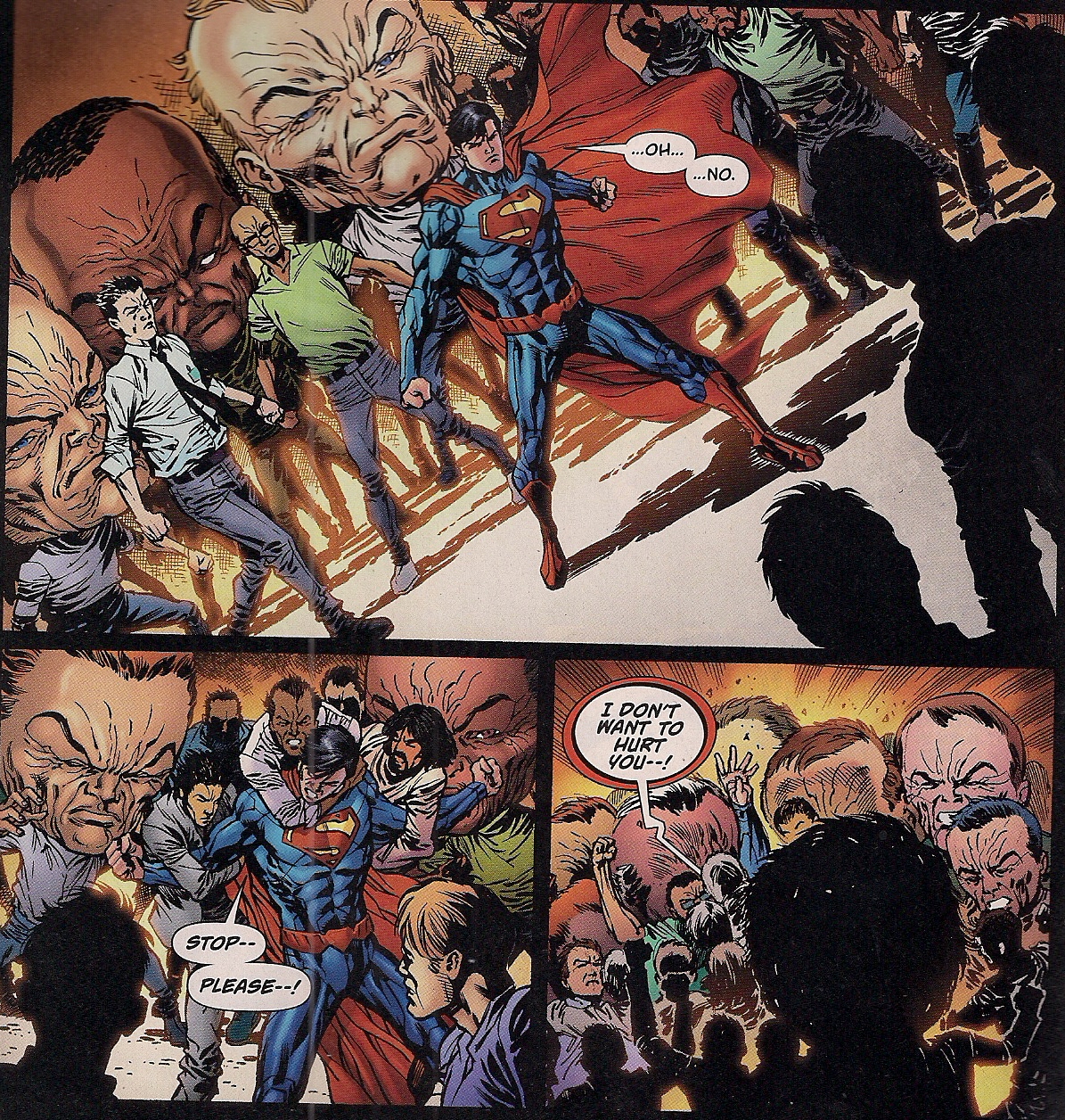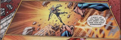 Still, this is another fun issue, with one exception, as Hammond causes a pair of Metropolis cops to shoot each other; we don’t see the carnage, but before the blast they’re aiming at one another’s heads. I’m surprised fill-in writer Mike Johnson includes such an unnecessary moment, given that earlier we see what has to be his rejoinder to the events of the Man of Steel movie.