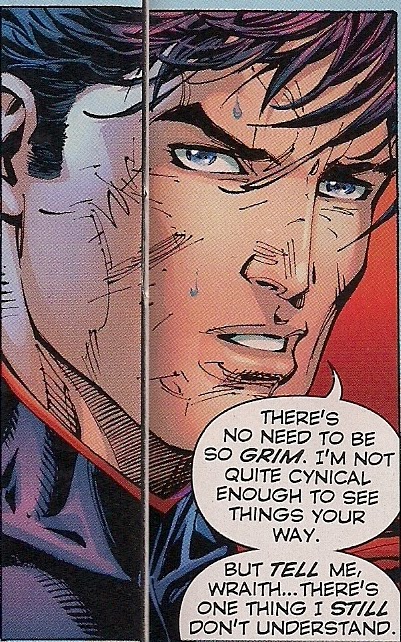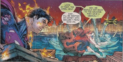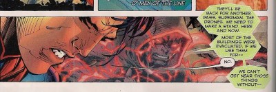 The teaching isn’t all one-way, as Superman shows Wraith his knack for battle tactics, and reminds him to consider bystanders as people, not collateral damage. The lesson doesn’t immediately take, but he at least give Wraith something to think about. And it’s good to see another Superman writer apparently responding to the heavy-handed, thoughtless tactics of the silver screen Man of Steel  (click on images to enlarge).