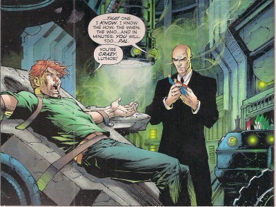 Unfortunately for the Daily Planet snapper, it’s Luthor who’s asking him the questions, and to ensure he answers, Jimmy is strapped up underneath a heavy-bladed machine with scarily moving parts. And the query Luthor most wants answered: who does he think will kill Superman?