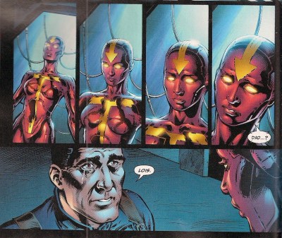 This seems to be a nod to the zombie craze, turn the Earth-2 Superman into a Darkseid-controlled zombie and have him face-off against Lois Lane, whose consciousness now runs a robot. The whole thing turns their love story inside out and probably sickens Silver Age-devotees.