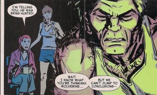 Rachel Grey has a bad dream, a vision of a young boy with strange features being chased. It rattles her, and spurs fellow X-Men Kitty Pryde, Rogue and Wolverine to take a road trip to the tiny town of Prospect, West Virginia, where Cerebro says there are two more mutants. Logan is full of hell, angry that ‘innocent children’ are being hunted down. He gets into a bar fight, giving Rogue and Kitty a chance to snoop around. They find Krystal, a scared teenager who lies about the true nature of her mutant abilities – she says she’s a precog, the reader knows she has persuasion powers. And she doesn’t mention that she’s stealing drugs for a guy named Jasper. The issue ends with Wolverine being confronted by one of the X-Men’s greatest foes.