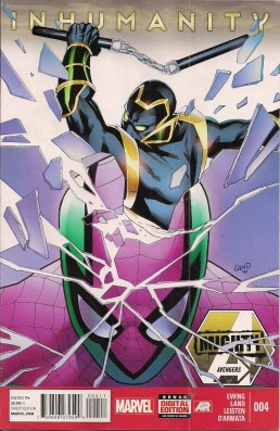 Once again, Ewing is in crossover territory, tying into the Inhumanity storyline, which has people worldwide revealed to be Inhumans and developing powers. Mighty Avengers introduces us to a corporate spy named Barbara, shiny new codename Quickfire, who’s out to secure some Terrigen crystal for the dodgy Cortex Incorporated from the Inhuman city of Attilan. The community has fallen to Earth and SHIELD is trying to raise it from the Hudson River.