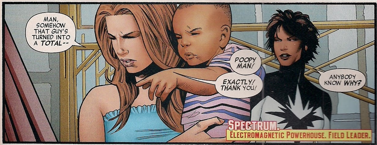 Mighty Avengers? Not if this logo is anything to go by. If you actually spot it on the comic store shelf – the bottom right placing virtually guarantees cover-up by the next title along – that tiny roadsign thing says the Apologetic Avengers. The Meek Avengers. The Namby-Pamby, Move Along, Nothing To See Here Avengers.