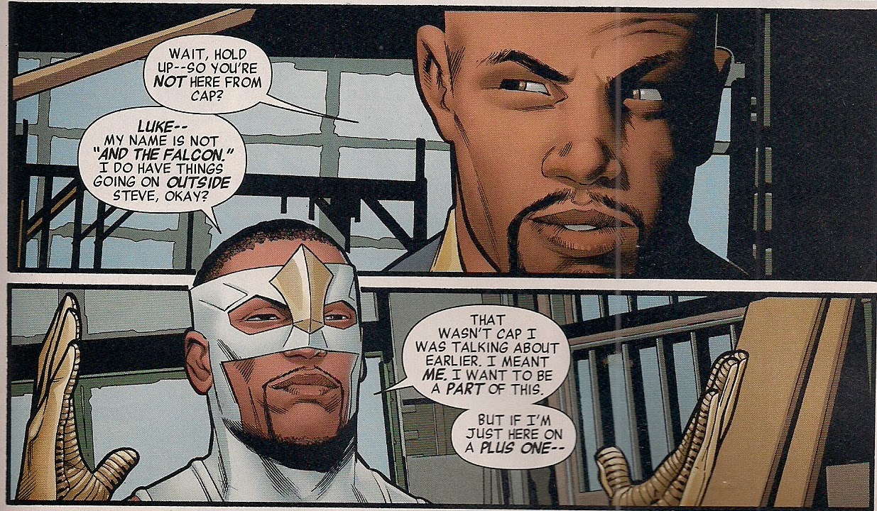 It's funny that the image you posted after saying “a little too photo-referenced” uses the same hands in the previous panel you showed. The Falcon and (character I don't know but some sort of an actor?) have the same hands. It's one thing to trace the way Land does but to use the same image twice in the same comic when it's not necessary either time, that's taking laziness to a new level.