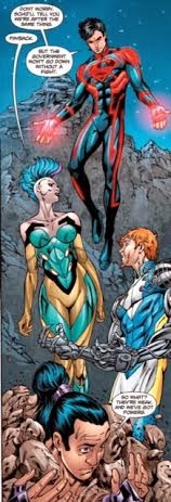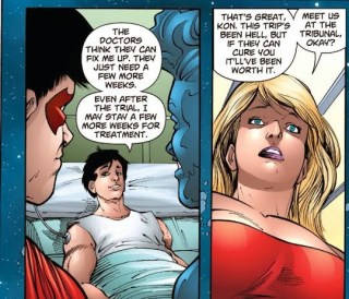 JLK’s insidious foster daddy Harvest is killing some superhero invented for the occasion (Geoff Johns, take note). Teen Titan Kid Flash is about to be tried for murders committed while he was a freedom fighter/terrorist. Wonder Girl is pushing her boobs into genuine but extremely ill Superboy Kon and insisting he get up and join them at the trial – obviously a lovely day out.