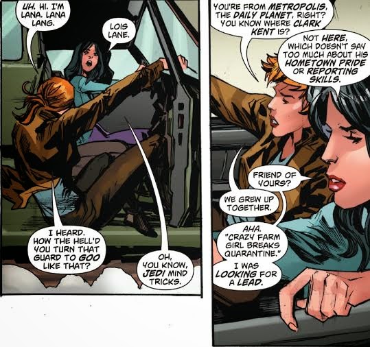 But as for this actual issue, I loved the encounter between Lois and Lana as they try to weigh one another up. Lois may not be quite herself, but it’s still fascinating to see Superman’s Un-Girlfriends together – and Lana looks as cool as anything zooming onto the scene on a motorbike.