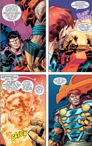 As well as spunky Serafina and bad boy Vykin, there’s rebel with a cause Mark Moonrider, the seemingly scatty Beautiful Dreamer (though it now seems to be Dreamer Beautiful, which misses the point – hopefully this is just letterer Travis Lanham having a ‘moment’) and my instant favourite, the sweet Big Bear. He’s already on Earth when the young gods of New Genesis arrive via Boom Tube, ready to help the newcomers acclimatise and, hopefully, succeed in their mission.