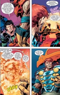 As for DiDio, this is the best dialogue I’ve seen from him, with a nice balance between the grandiloquent and the grounded. There’s an awful lot of set-up here, but it’s woven into a fast-paced opening chapter with deceptive ease and not a little wit. I want to know more about every character and don’t mind at all that so far there’s no mention of any Infinity Man. I expect he’ll show up next issue as the cliffhanger collides with our young heroes.