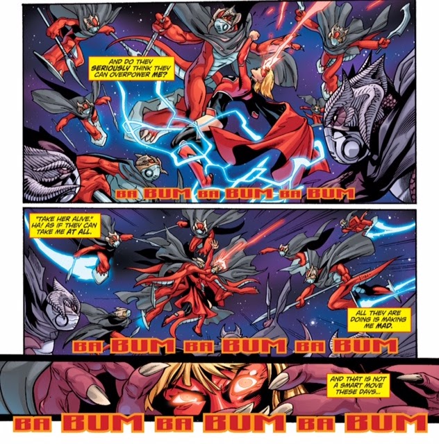 Emanuela Lupacchino and Ray McCarthy’s art combines grace and power to make Kara’s encounter with the Worldkiller memorable. Good as the action scenes are, though, my favourite moments are Kara flying forth – there’s a lovely sense of effort in the movement. Will, if you will. And the artists deserve a bonus for the lack of shortcuts when it comes to the Worldkiller’s ornate horns. Just look at those babies!