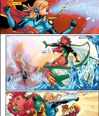 Well, I know what I’d tell ’em – if a school wants to recruit me, let them do the selling, not the attacking. But, Kara’s a calmer, smarter soul than when she first arrived on Earth, as proven when she quickly overcomes her surprise, assesses the situation and thoroughly whomps each assailant, then listens to the headmistress, Preceptor Lys Amata. We readers know Kara’s going to be with the school for several issues, but I wouldn’t be surprised if she lays down her own terms for staying.