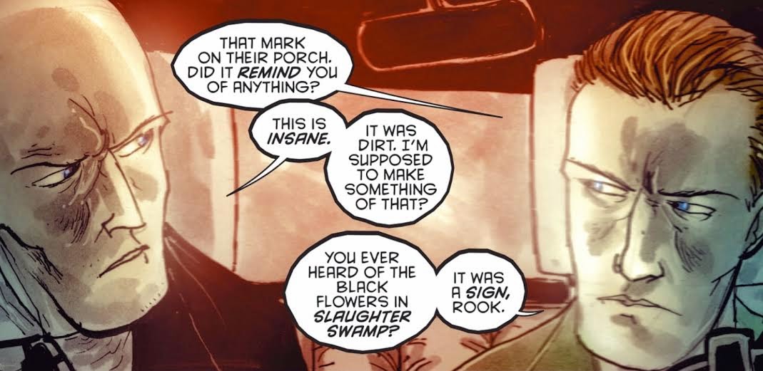 Ben Templesmith’s art is a massive boost for this series, making it look like no other Gotham-set book. His full-colour illustrations bring that round-midnight tone; figures are exaggerated just enough to be off – check out the sisters’ stick-thin arms – while even suburban homes become as threatening as swamp cabins. One issue in and I can barely imagine anyone else drawing this series, though I fully expect Doyle to have some eminently suitable subs in his Rolodex (Frazer Irving, for example, whose work on the much-missed Xombi has a similar feel).