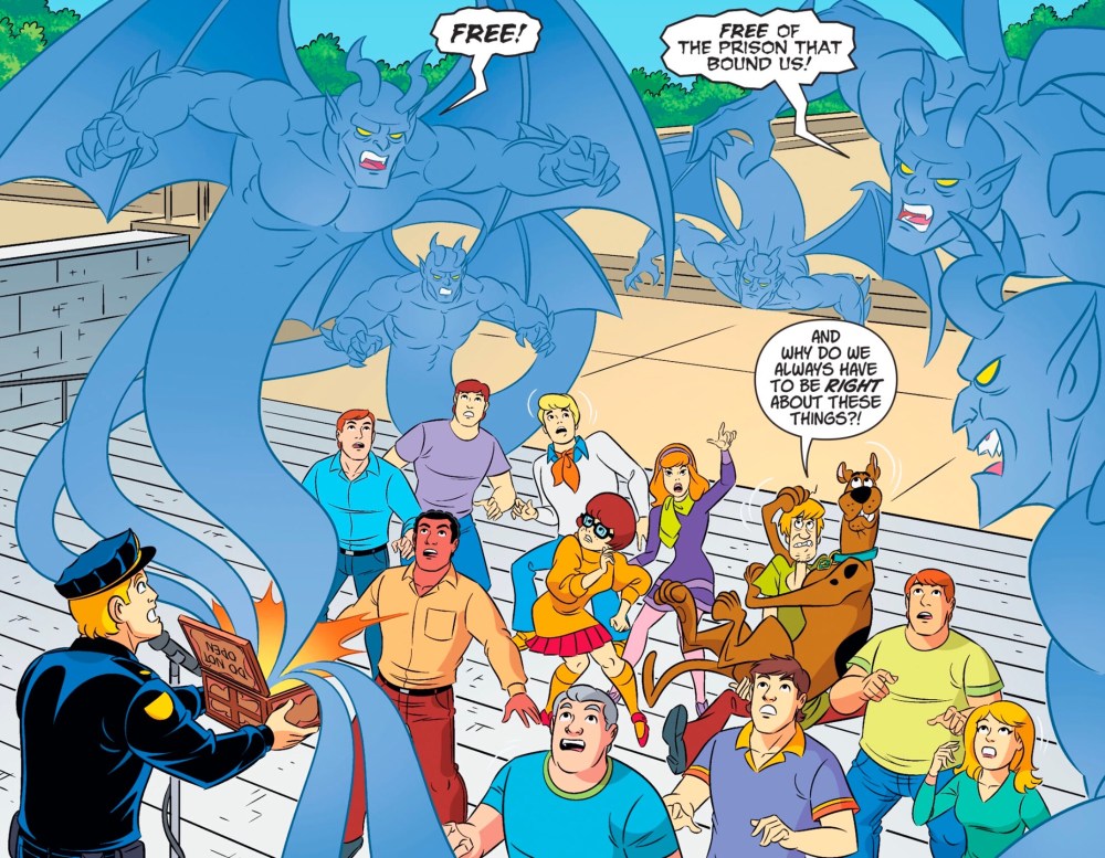 Whether you buy Scooby-Doo’s axis-annoying adventures in print form as Scooby-Doo Team-Up #39,or digitally, as chapters 77 and 78, you’ll find this one tasty Scooby-Doo snack.