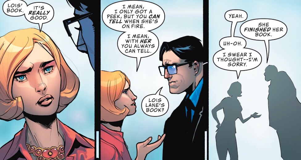 I buy your explanation for Superman’s tantrum, but if things really are so bad that he has to run out on his boss – the godfather of his son, since Rebirth – he should take a sabbatical and find his wife and child. I simply do not buy that he hasn’t got the super friends to track them down.
