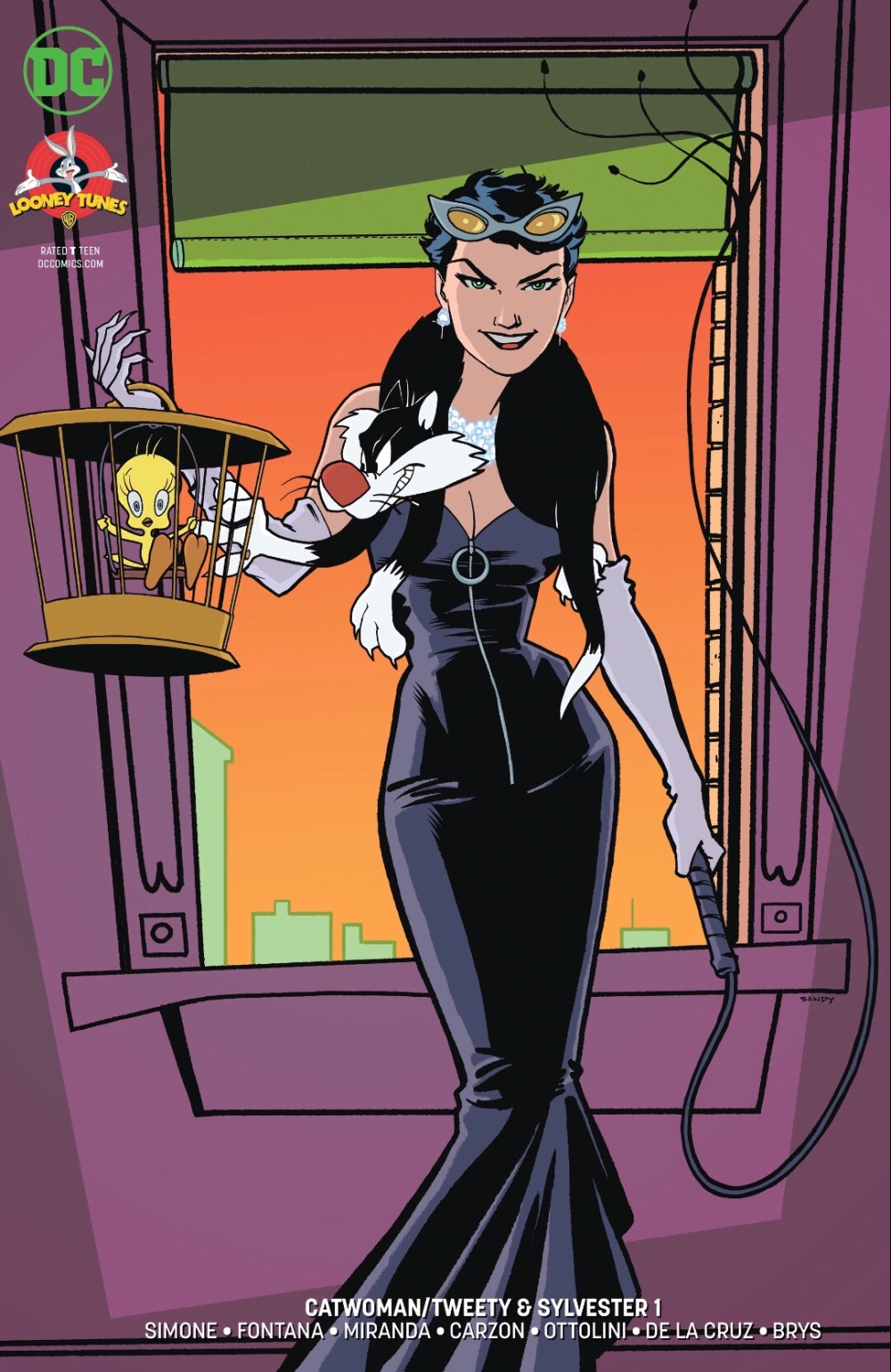 Emanuela Lupacchino‘s cover, coloured by Tomeu Morey, nicely conveys the frustration Selina (and Dinah) rightly feel, while the variant by Sandy Jarrell, with Tweety and Sylvester in classic mode, is a beaut. A shout-out, too, to editors Liz Erickson and Jim Chadwick for their animal wrangling skills.