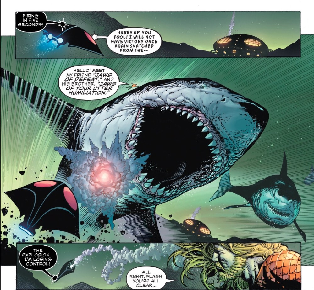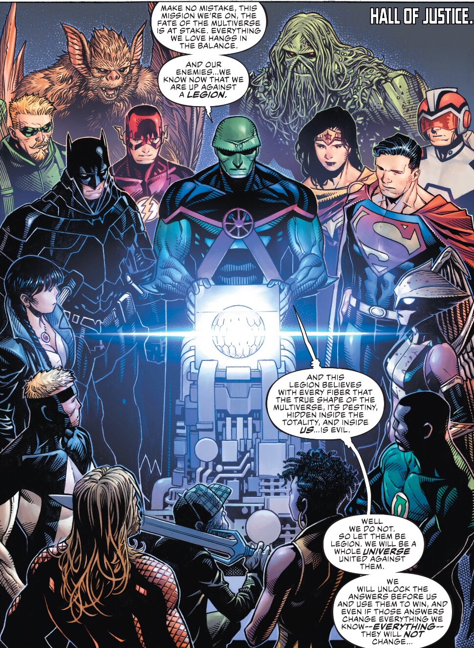 Right on the money, Mart. There’s so much going on, in so many different places, and barely a nod at bringing a reader up to speed (even after a full month away, since last issue was a Legion of Doom interlude!). That “Batman voice” joke was a callback to issue 1, right? It could’ve landed better if I’d realized why Superman was talking like Edgar Allen Poe all of a sudden.