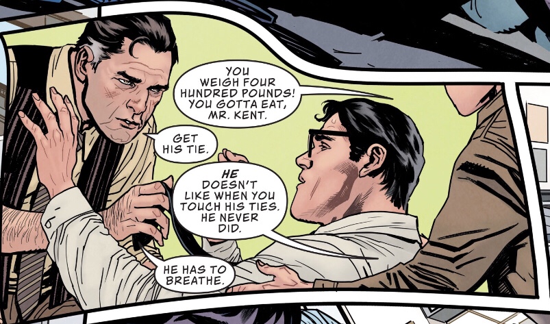 And yes, the dialogue about Clark’s weight, his not wanting his tie removed, his insistence on not getting in an ambulance were all perfect!
