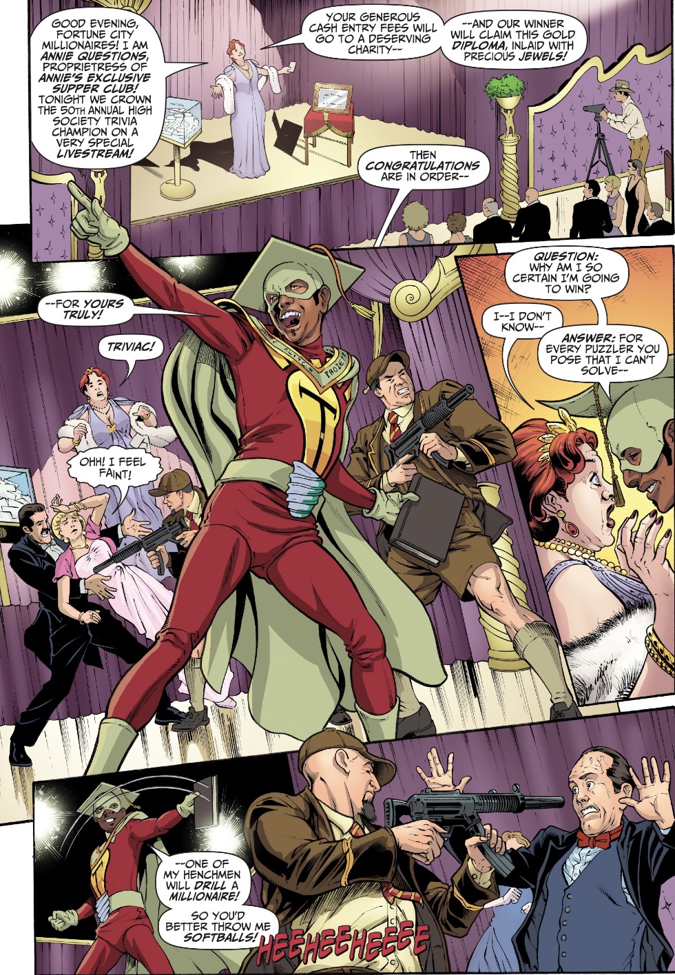 Across town, Triviac strikes at high class quizzing joint Annie’s, the authorities having been unable to crack the baddie’s ridiculously easy clue without the help of the hero they believe is Dragonflyman.