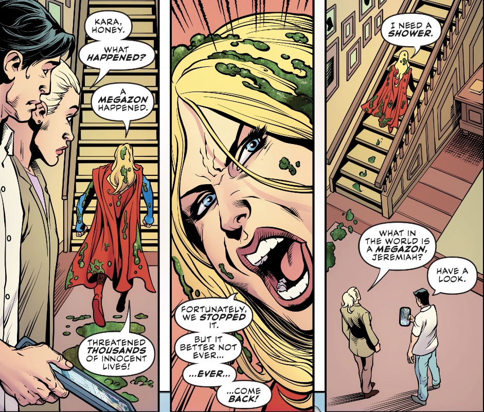 But Kara suffering hallucinations from Kryptonite poisoning was a half-nod to Sterling Gates using that as an excuse to explain all the ‘killer Zor-El’ nonsense Joe Kelly brought to the table.