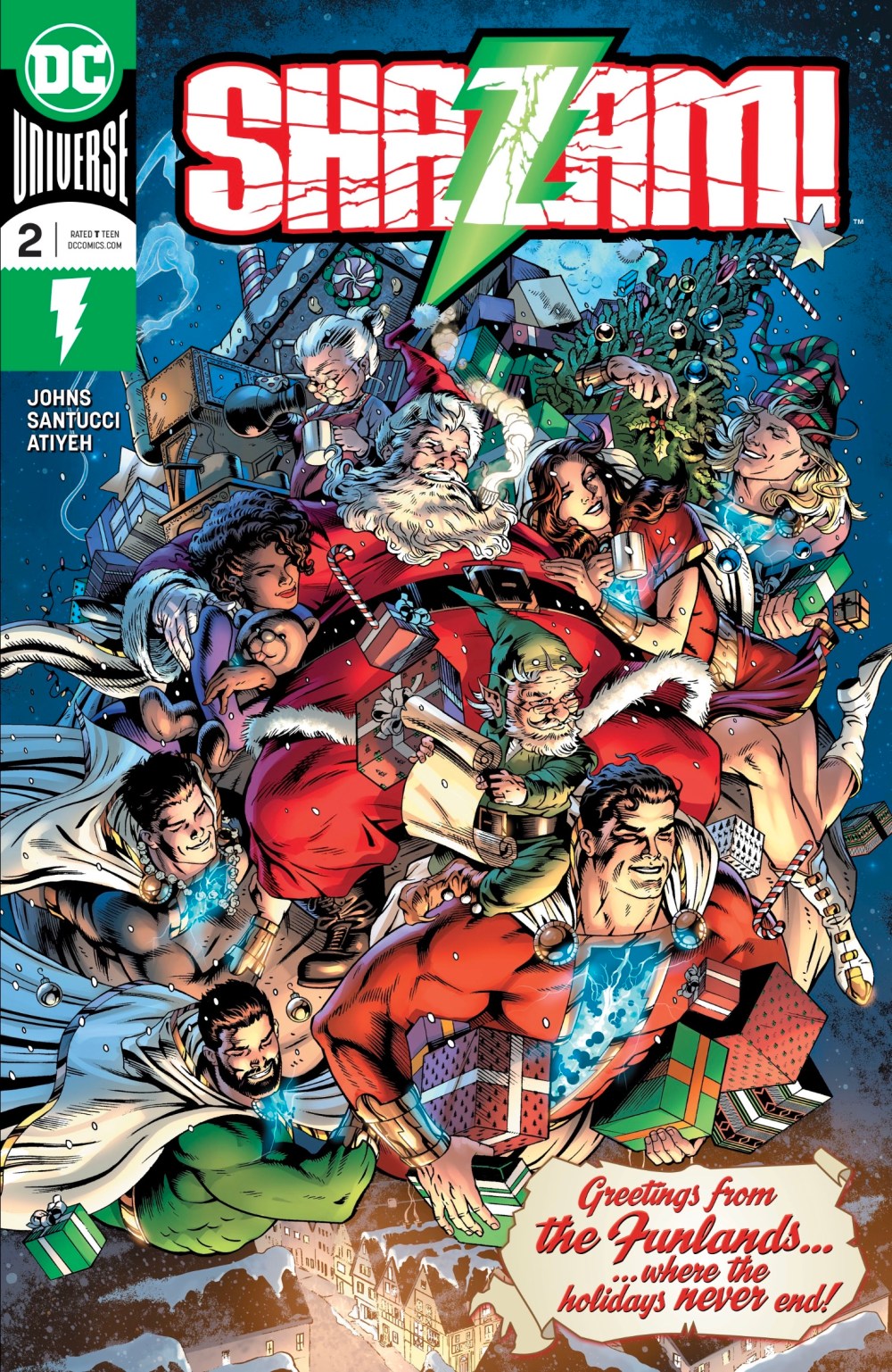Oh well, if you wish it could be Christmas every day you’ll love this second issue of Geoff Johns’ 21st-century take on CC Beck and Bill Parker’s Marvel Family. That’s because it sees foster kids Billy, Mary, Freddie, Darla, Eugene and Pedro take a trip to a land built for fun.
