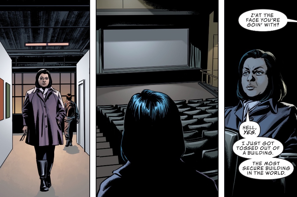 Elsewhere, Amanda Waller of Task Force X shows up for a meeting with military high muck-a-muck Sam Lane.