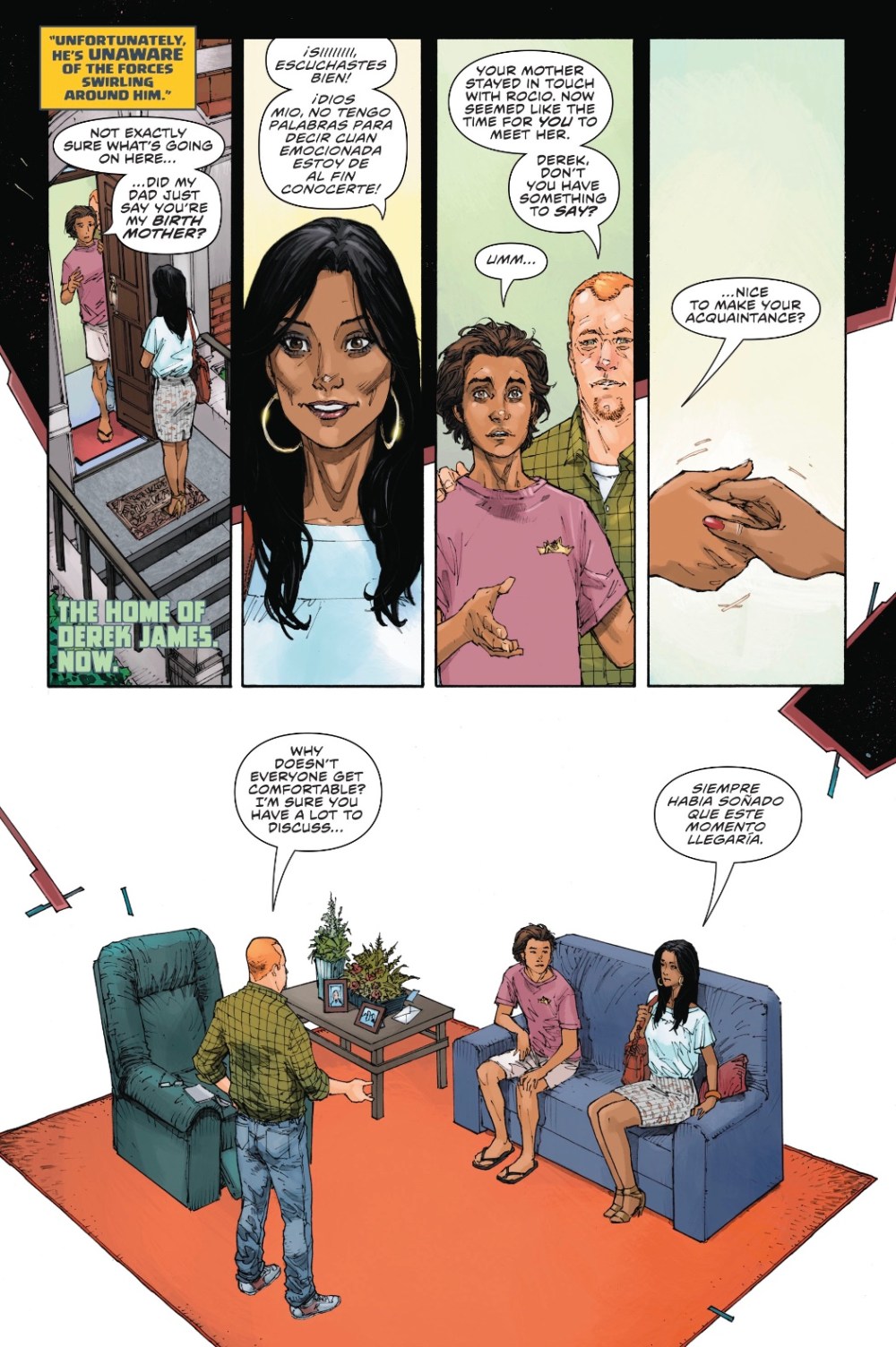 Kudos to Didio for some nicely nuanced writing, eschewing the obvious melodramatic routes of instant connection or teenage anger. Instead, Derek feels a little flat. Rocio seems a decent person, and of course she had her reasons for giving him up, but the consequence is that she’s nothing to Derek – Helen and David, who adopted him, are his parents. Maybe one day Derek and Rocio will have a relationship, but right now she’s just a stranger getting in the way of his mourning his mother.
